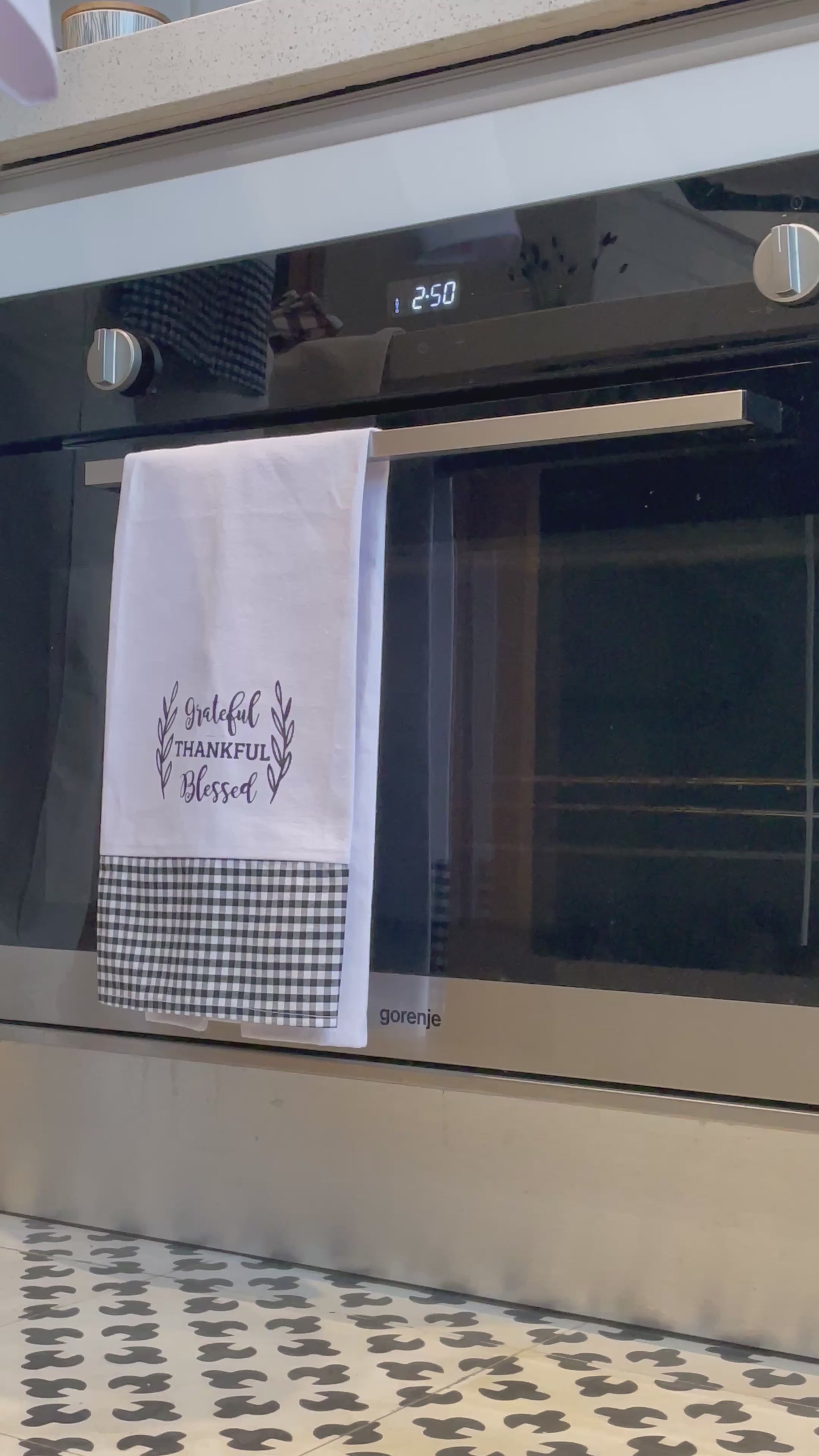 Add a touch of elegance and warmth to your kitchen with the charming Grateful & Thankful kitchen towel set.